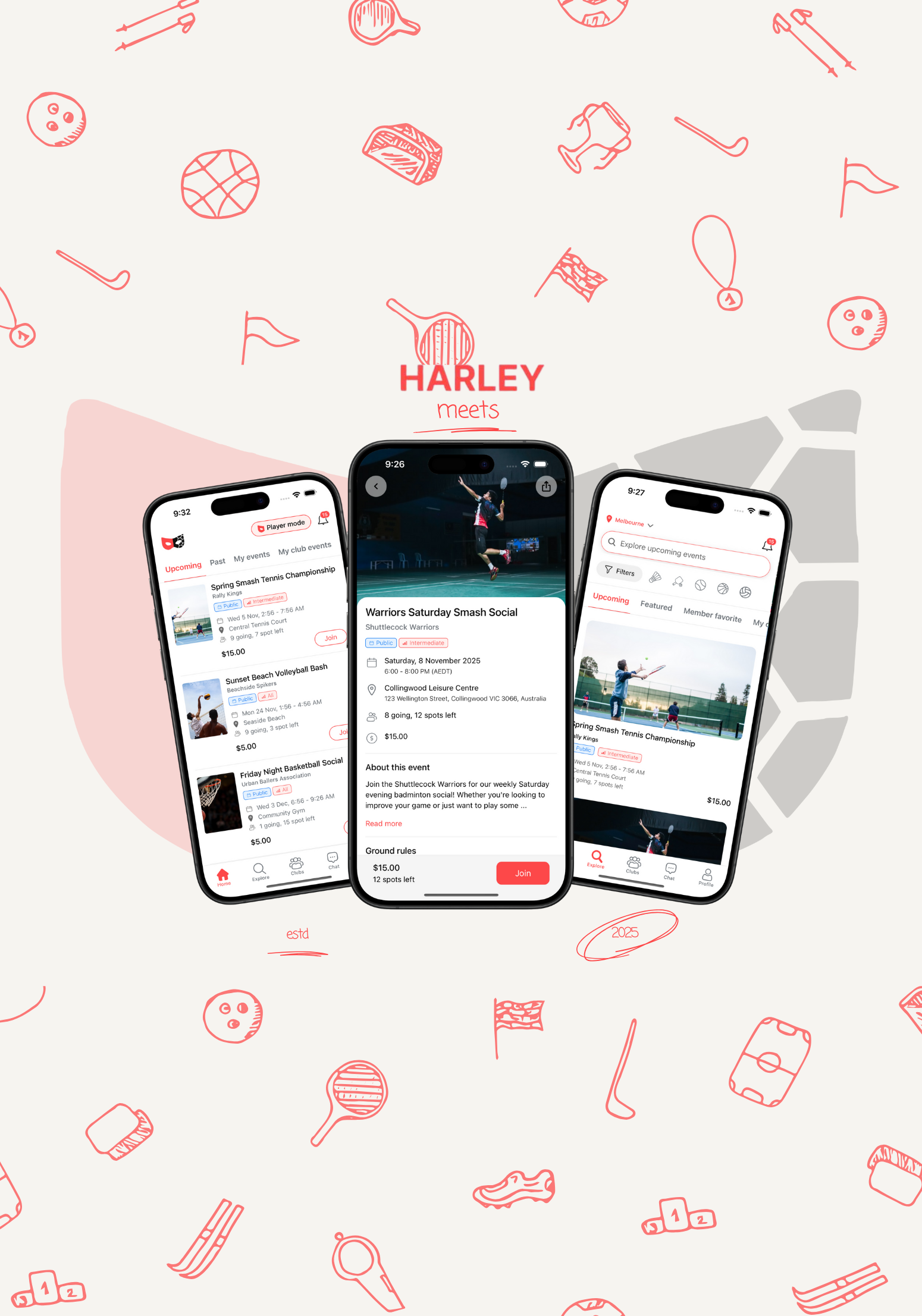 Harley Meets was created for sports lovers, by sports lovers (and people lovers too) in Melbourne, VIC. We know how good it feels to move, laugh, and grow, not just on your own, but with people around you.